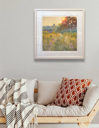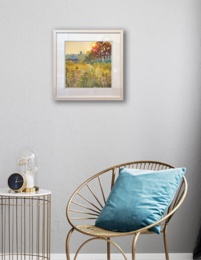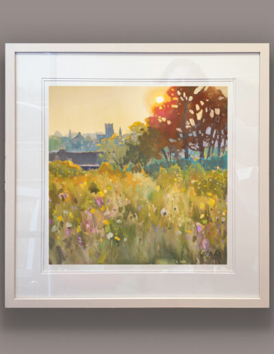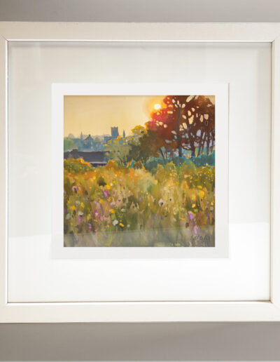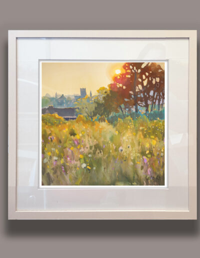 A lovely view of Gorey town from the north-west side on Courtown Road, looking towards St Michael’s Church. I painted it with the sun setting behind those iconic trees, giving the whole scene that warm, glowing light that makes everything feel a little softer and more hopeful.