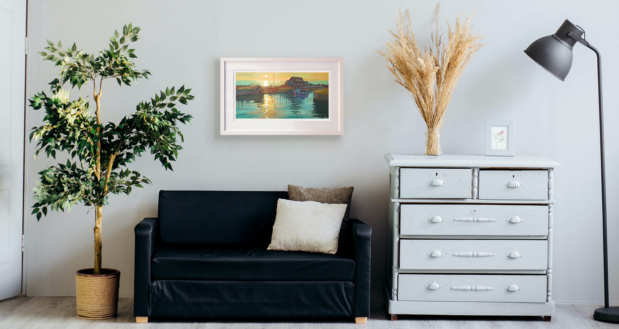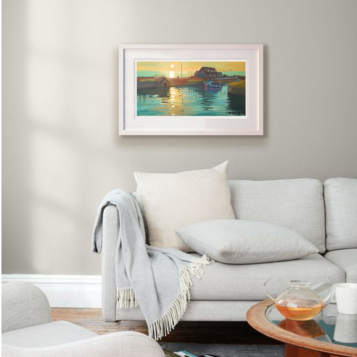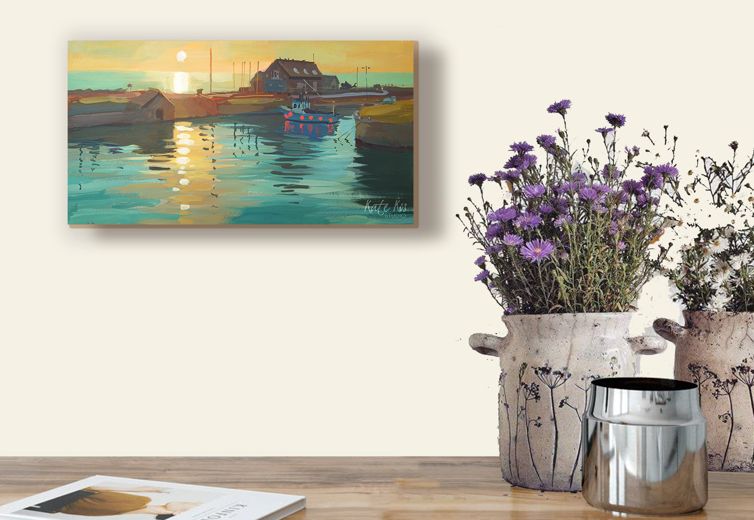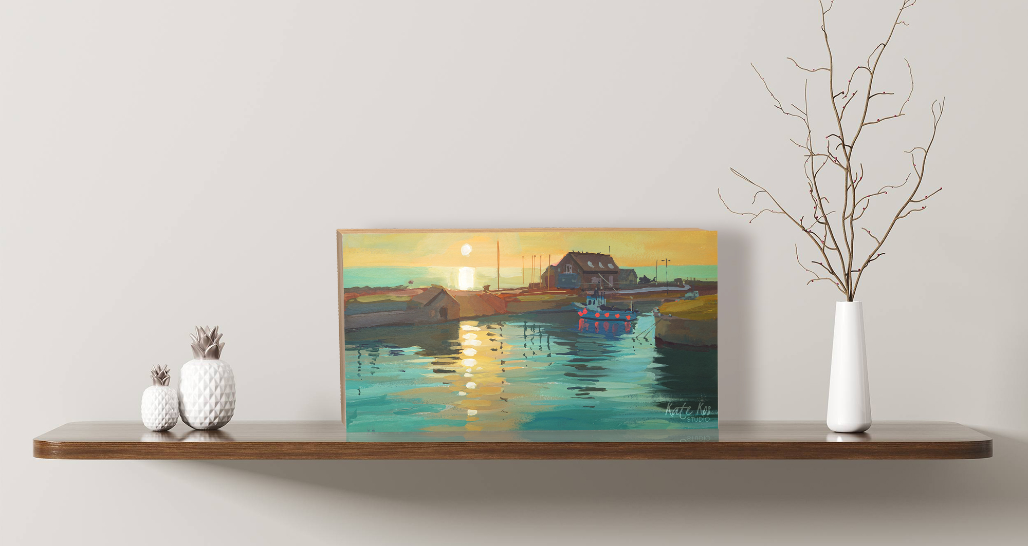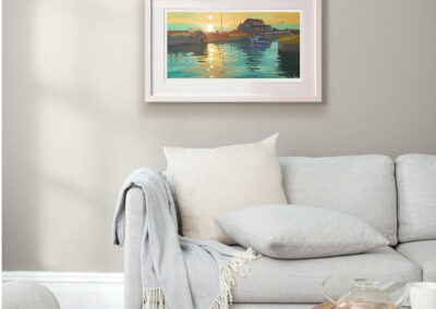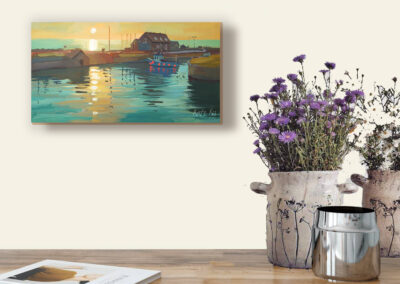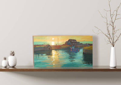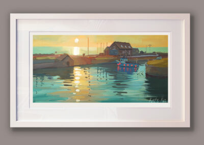I woke up early and went down to Courtown Harbour to paint the sunrise. I love the colours in this one, that soft early light over the water, and I kept it fresh and bold in gouache. It’s now available as a limited edition print, and also as a canvas block.